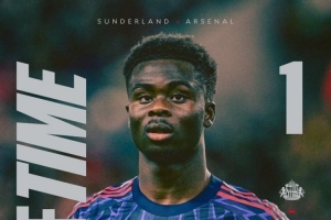萨卡客战桑德兰破门,19个月以来首次在伦敦之外的英超比赛进球
