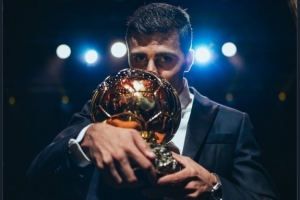 曼城晒出罗德里亲吻金球奖的照片,并写道:“去年今日,罗德里成为金球奖得主。”