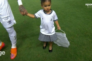 体育资讯11月16日讯 北京时间今天上午,桑托斯在巴甲第13轮补赛中主场对阵帕尔梅拉斯。此役内马尔为桑托斯首发出战,赛前他带着女儿玛维入场。